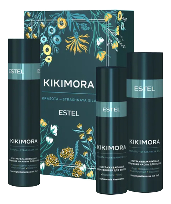 От производителя:Набор для волос Kikimora от российского косметического бренда ESTEL вернет красоту и шелковистость сухим и ломким прядям. Это концентрат полезных веществ из обиталища сказочной Кикиморы. В его состав вошли болотные растения и продукты, обитающие в озерах и реках. Они наполняют здоровьем и силой не только волосы, но и их корни.В набор входят:Шампунь для интенсивного увлажнения волос Kikimora мягко и бережно очищает пряди и кожу головы от загрязнений, кожного жира и стайлинговых средств. Экстракт цветов белой кувшинки в составе средства наполняет волосы силой и блеском. Экстракт красных водорослей насыщает кутикулу волос протеинами и коллагеном, способствующими удержанию влаги. Торф наполняет волосы соединениями, способствующими восстановлению структуры волос. А экстракт аира болотного стимулирует питание волос от корней. Также в состав шампуня входит бетаин, способствующий укреплению волос, их увлажнению и смягчению. Шампунь обладает тонким ароматом речных цветов и моря, которые улучшают настроение и дарят бодрость.Торфяная маска Kikimora создана для глубокого увлажнения сухих и безжизненных волос. Формула содержит торф и морские водоросли, препятствующие потере влаги, и экстракт аира для укрепления корней и стимуляции роста волос. Маска не жирнит кожу голову, делает волосы мягкими и блестящими, облегчает расчесывание и обладает антистатическим эффектом. Обеспечивает восстановление структуры, ускоряет рост, дарит прядям эластичность. Крем-филлер Kikimora обеспечивает лёгкое расчёсывание, смягчение и увлажнение волос, разглаживает, придает прядям гладкость и шелковистость. Особенно актуален продукт для тех, у кого пушистые волосы: они становятся гладкими и легко укладываются. Экстракт красный (бурых) водорослей, входящий в состав крема, способствует активизации кровообращения, улучшает питание волосяных луковиц, делает волосы более сильными и послушными. Средство также содержит болотный торф, который нормализует работу сальных желез кожи головы, очищает волосы от косметических средств и делает их блестящими. Способ применения:Средства из набора ESTEL Kikimora подходят для ежедневного ухода за волосами.