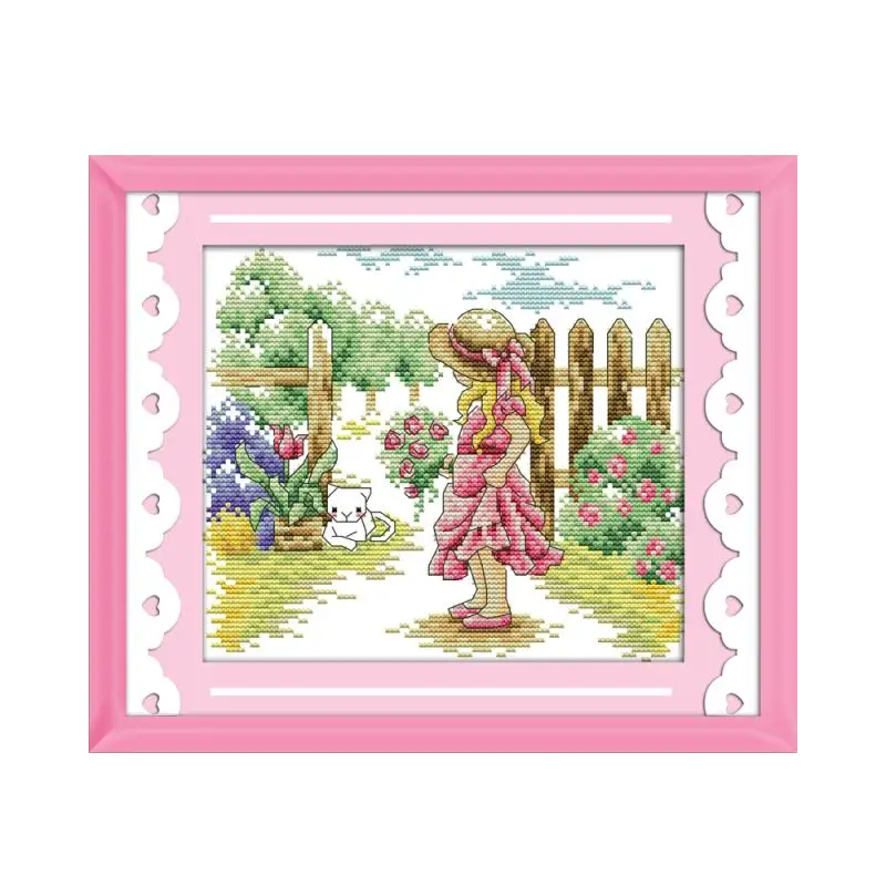 Набор для вышивки «Девочка видимая кошка», Набор для вышивки крестиком, с принтом «Цветы и сад», 14 карат, 11 карат, холст для вышивки «сделай с...