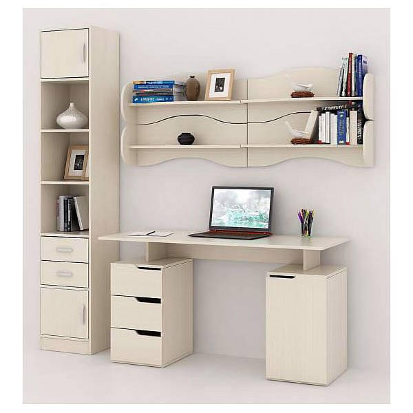 Серия - Нейт УШ-3-01, Компоненты, входящие в комплект - полка навесная - 800x250x300 мм, стеллаж комбинированный - 400x350x2076 мм, стол письменный - 1400x600x780 мм, Материал столешницы - ЛДСП Е1, Материал фасада - ЛДСП Е1, Материал корпуса - ЛДСП Е1, Объем упаковки, куб. м - 1.267, Цвет столешницы - дуб молочный, Цвет фасада - дуб молочный, Цвет корпуса - дуб молочный