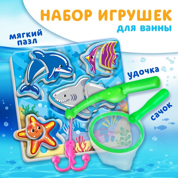 Набор для игры в ванне Крошка Я "Рыбалка: Морской мир", удочка, сачок, мягкий пазл, Разноцветный