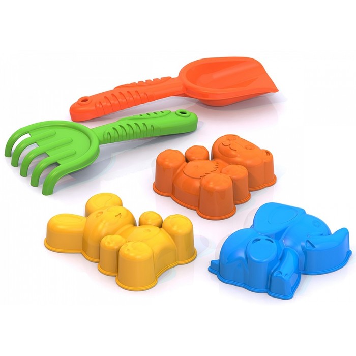Набор для игры в песке №90: 3 формочки, грабли, совок