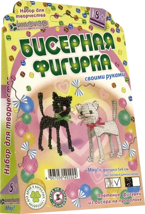 Набор для изготовления фигурки из бисера. Мяу!, Чёрный;белый