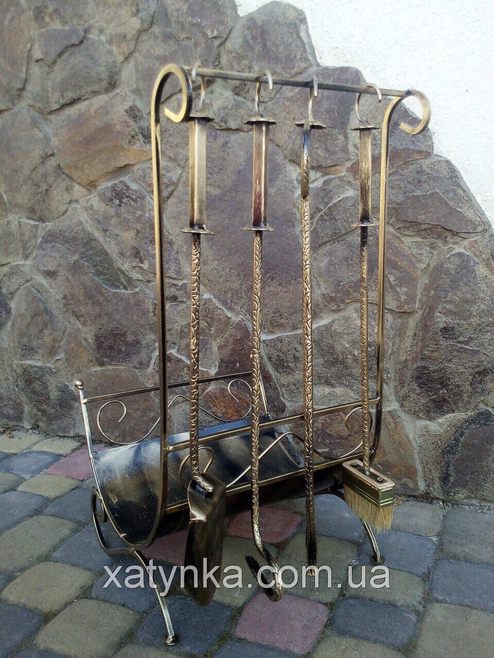 В комплект входят: совок, метелки для сбора золы, кочерга, специальные щипцы и дровница.