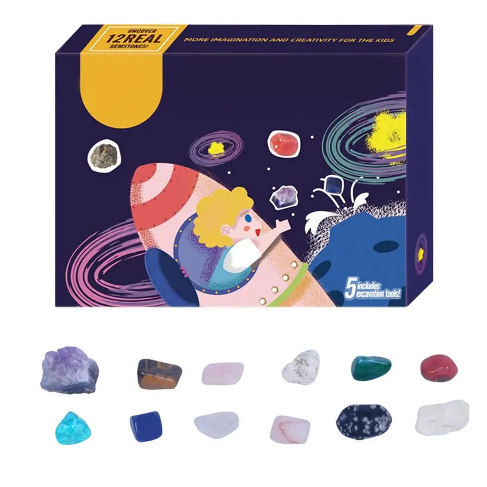 Набор для копания драгоценных камней, 12 реальных драгоценных камней, изысканный набор для копания драгоценных камней с драгоценными камням...