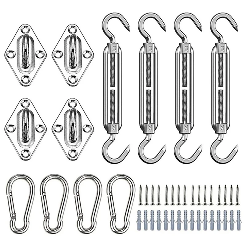 Набор для крепления затеняющих парусов, серебряная сетка для крепления затеняющих парусов с тройным углом, стальное Крепежное оборудование для крепления затеняющих парусов, набор пряжек для дверей