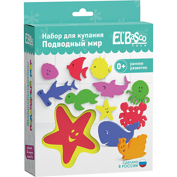 Набор для купания El`Basco Toys «Подводный мир» включает мягкие и легкие фигурки морских жителей. Если намочить фигурки водой, их можно приклеить к гладкой поверхности. Играя, малыш изучает названия, формы и цвета.