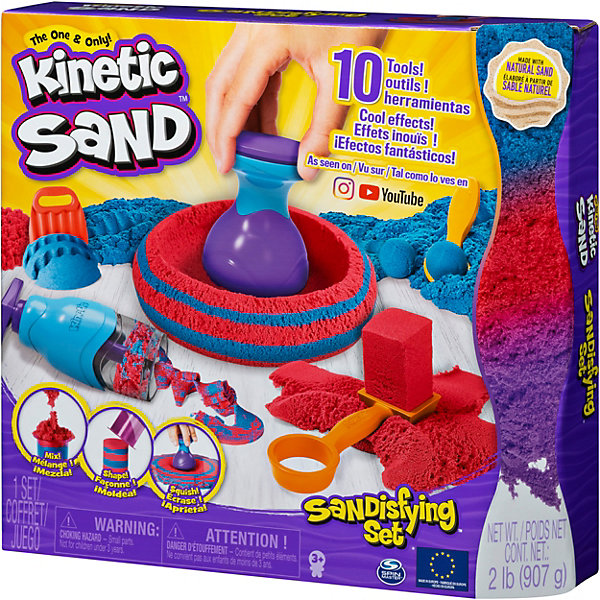 • в наборе: 2 цвета песка, 10 формочек и приспособлений