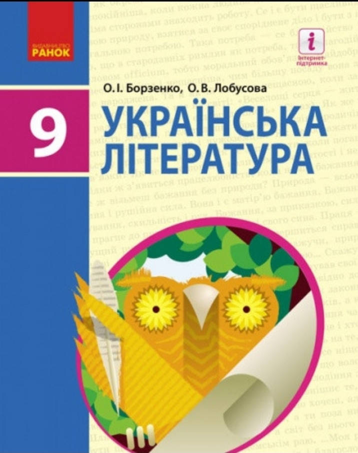 Українська література.Підручник 9 клас Борзенко О.І. ,Лобусова О.В. Ранок 2017 рік