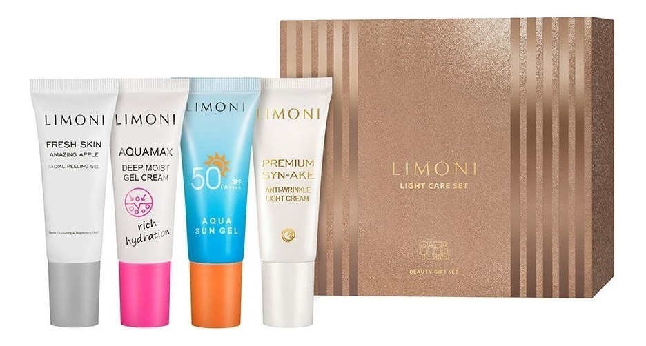 Набор для лица Light Care 4*25мл (гель-скатка Fresh Skin Amazing Apple + гель-крем Aquamax Deep Moist + солнцезащитный крем-гель Aqua Sun Gel + легкий крем Premium Syn-Ake)