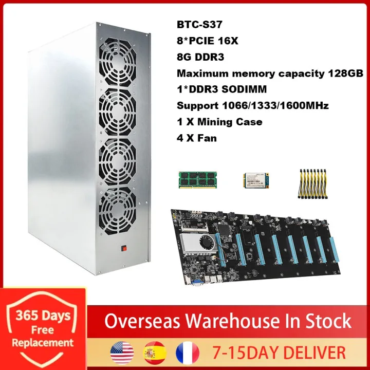 Набор для майнинга, шасси для майнинга с материнской платой 8x PCI Express 16X 8 Гб DDR 128 Гб SSD 4 охлаждающих вентилятора для биткоина BTC