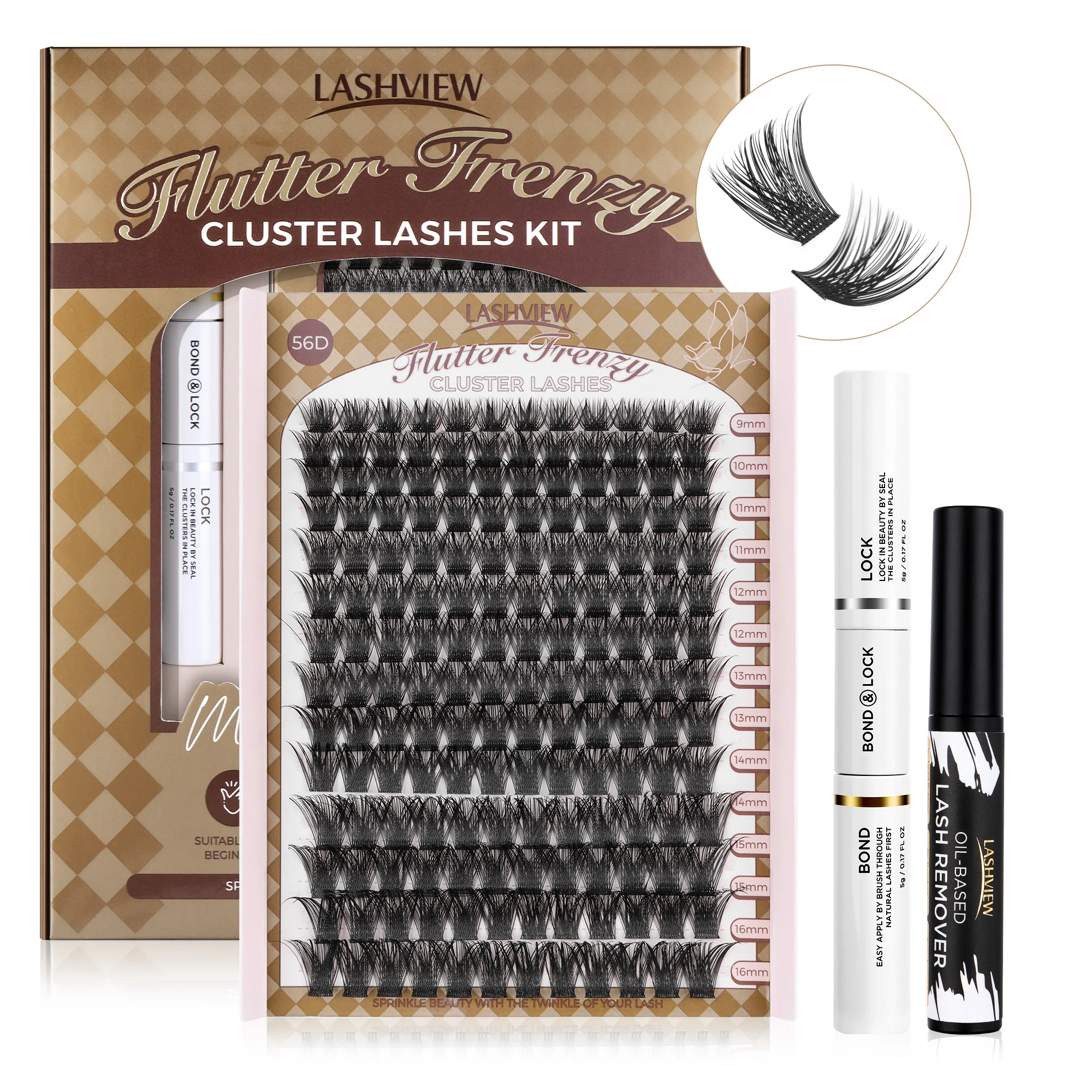 Набор для наращивания ресниц LASHVIEW 30/40/56D, натуральные мягкие простые в применении Кластерные ресницы, набор с клейким средством для удаления жира