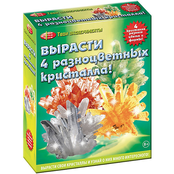 Набор для опытов Твои эксперименты "Вырасти 4 разноцветных кристалла", Разноцветный