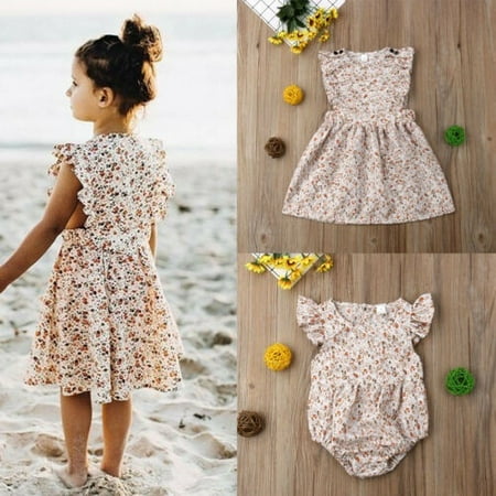Baby Girls Little Sister Romper Big Sister Dress Family Matching Outfit Floral Ruffle Sleeve Bodysuit + Sundress Summer Clothes (9-12 Months Little Sister Romper)