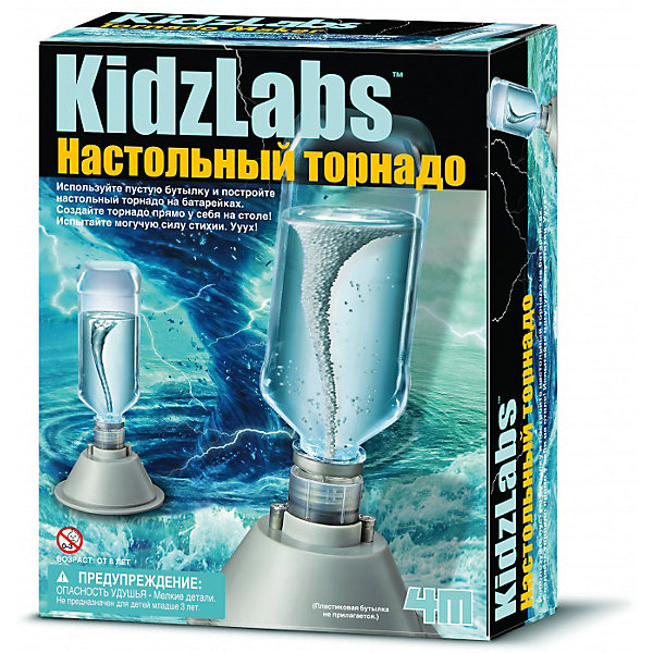 Настольный торнадо, 4M - это набор, который поможет юному исследователю создать в бутылке с водой настоящий торнадо. Используйте пустую бутылку, и постройте настольный торнадо на батарейках. Создайте торнадо прямо у себя на столе! Испытайте могучую силу этого природного явления! Набор развивает интеллектуальные и творческие способности ребенка, стимулирует воображение и интерес к науке. Абсолютно безопасен, тщательно протестирован и соответствует европейским стандартам.