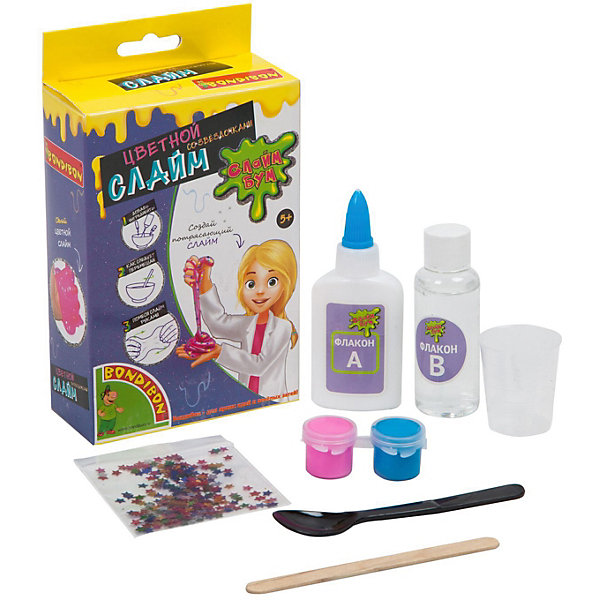 Набор для опытов Bondibon "Науки с Буки. Слайм Бум", Цветной слайм со звёздочками