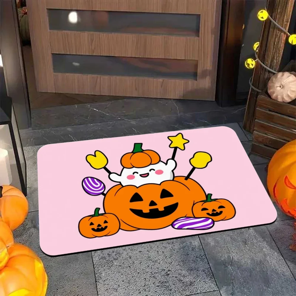 Halloween Pumpkin Witch Holiday Entry Door Floor Mat Dirty Resistant Slip Resistant Dustproof Household Foot Mat
