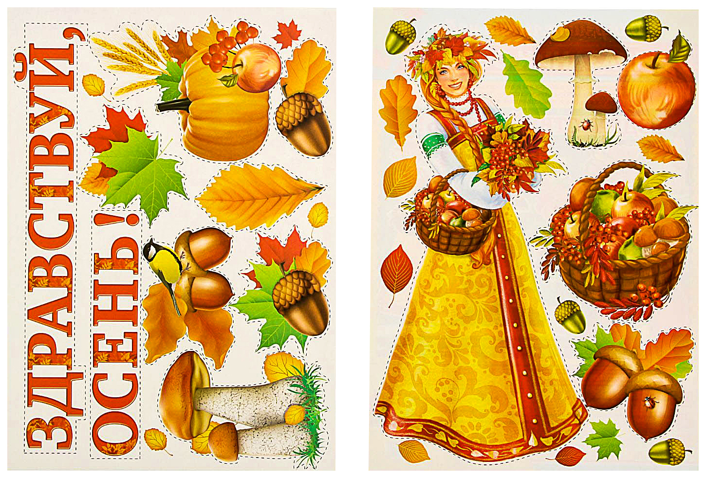 Комплектация: | надпись «Здравствуй, осень»! - 1 шт, красавица осень - 1 шт, осенний декор - 9 шт |