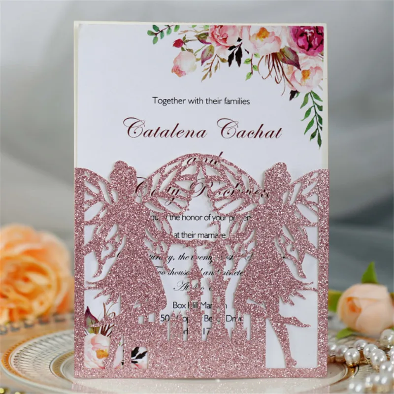 Набор для приглашения на вечерние, Розовая фея, Бабочка, лазерная резка, несколько цветов, 50 наборов