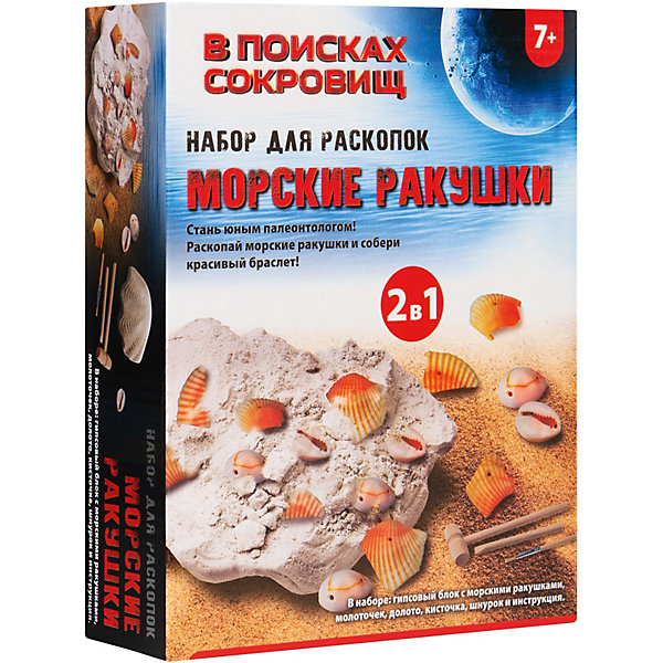 Набор понравится ребенку, который увлекается поисками кладов и сокровищ. Используя инструменты, ему нужно раскопать ракушки из раковины. В них есть дырочки, за счет чего можно продеть шнурок и сделать украшение своими руками. Благодаря такому набору, ребенок познакомиться с полезными ископаемыми, узнает новую информацию.