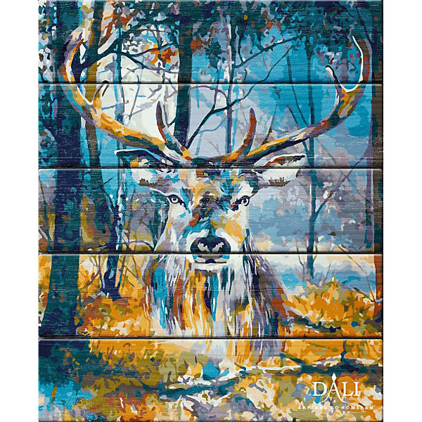 Набор для раскрашивания по номерам по дереву Dali "Сказочный олень, Синий, Набор для раскрашивания по номерам по дереву Dali "Сказочный олень"