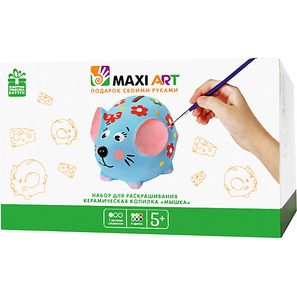 • в комплекте: керамическая копилка с резиновой пробкой, 6 акриловых водно-дисперсионных красок, кисть, подарочный бумажный пакет, бумажная наклейка