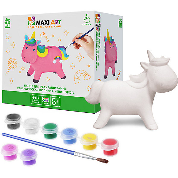 Набор для раскрашивания Maxi Art Копилка Единорог, 14 см, Разноцветный, Набор для раскрашивания Maxi Art Копилка Единорог, 14 см