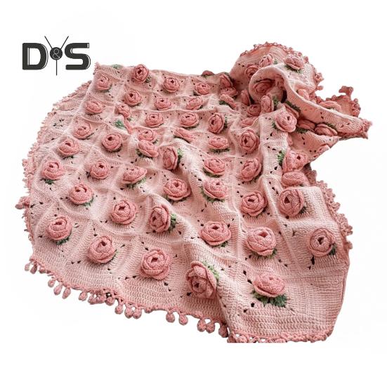 Набор для самостоятельного вязания крючком одеяла с розами, ручная работа, пряжа, вязание, цветочное одеяло, подарок на День матери, День святого Валентина, день рождения, для женщин, начинающих M розовый
