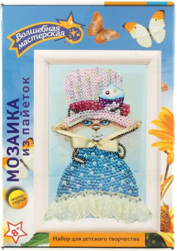 Набор для создания поделок/игрушек Волшебная мастерская Мозаика из пайеток малая Кошка М-27