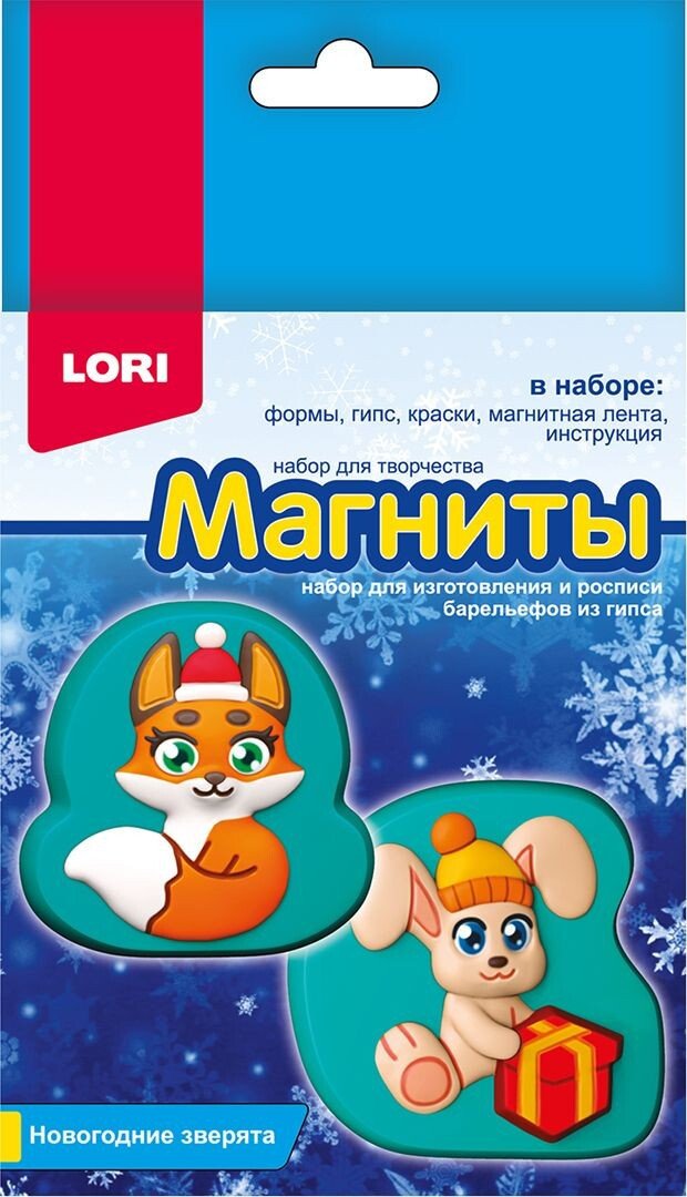 Набор для создания поделок/игрушек Lori Магниты из гипса №3 Новогодние зверята Пз/Г-023