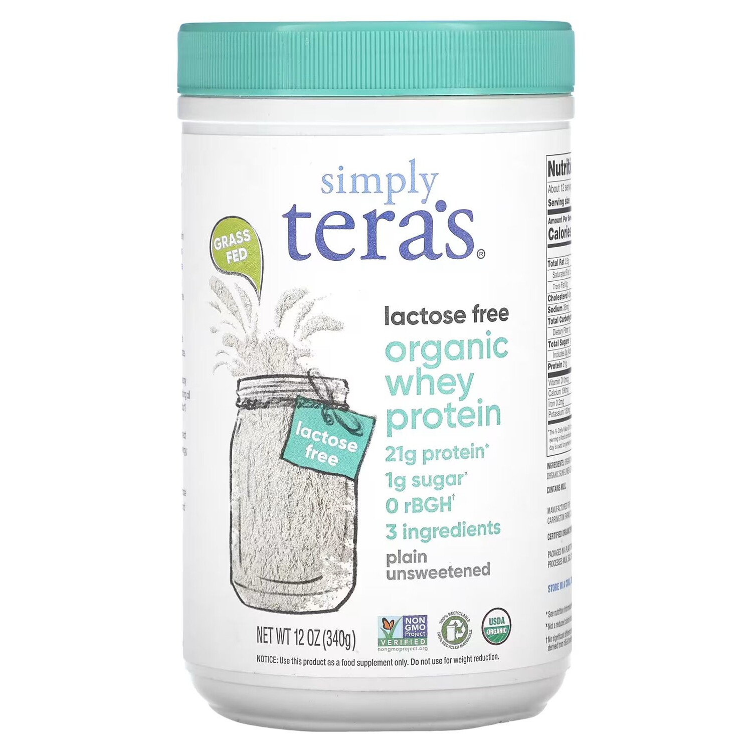 Органический сывороточный протеин, простой несладкий, 12 унций (340 г) Simply Tera'S
