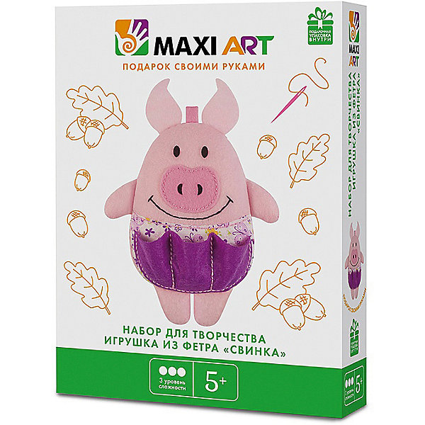 Набор для творчества Maxi Art «Игрушка из фетра Свинка» позволит детям самим создать из деталей фигурку в виде свинки. Готовой поделкой можно украсить комнату или полочку, а подарочный пакет позволит красиво оформить ее в качестве подарка друзьям.