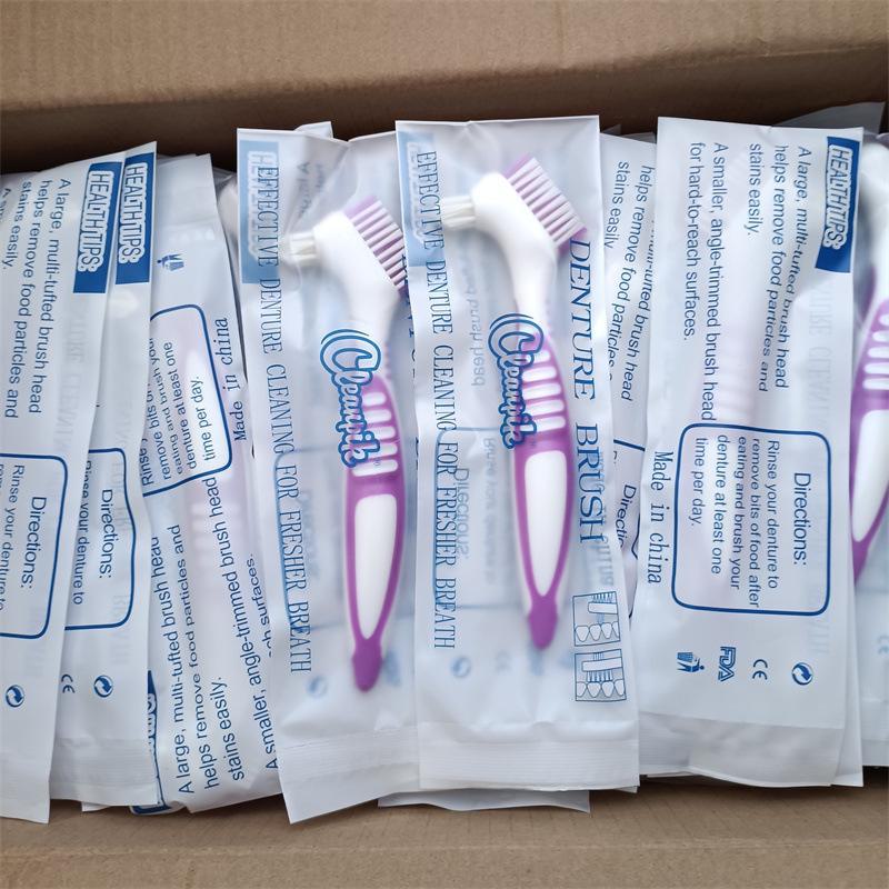 Набор для ухода за зубами для пожилых людей: Зубные протезы, чистка зубов, двухсторонняя зубная щетка и шипучие таблетки для удаления пятен. Bag/Pack фиолетовый