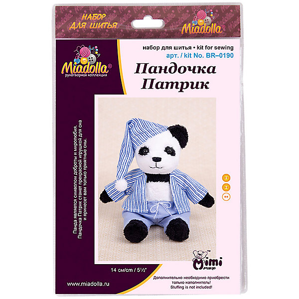 Набор для изготовления игрушки Miadolla Пандочка Патрик включает материалы для шитья от этапа заготовки. Готовая поделка отличается мягкостью, имеет миловидный внешний вид и может принимать сидячее положение. При необходимости игрушку можно постирать.
