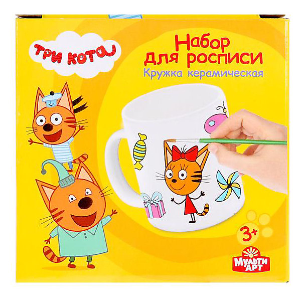 С набором для творчества «Мульти Арт» ваш ребёнок почувствует себя настоящим художником и сможет самостоятельно смастерить подарок на новый год или день рождения. В него входит кружка с контуром для росписи, кисть и 6 акриловых красок. Проявив немного усидчивости и фантазии, юный художник украсит керамику цветными изображениями персонажей из мультфильма «Три кота» и другими деталями. Какое же изделие может быть дороже, чем то, которое сделано своими руками? Развивайте мелкую моторику рук, фантазию, цветовое восприятие и творчество вместе с наборами «Мульти Арт»! Сертифицировано, рекомендовано для детей старше 3 лет.