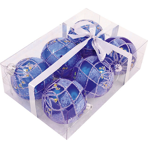 Набор елочных шаров Magic Land синий, 6 штук, Разноцветный