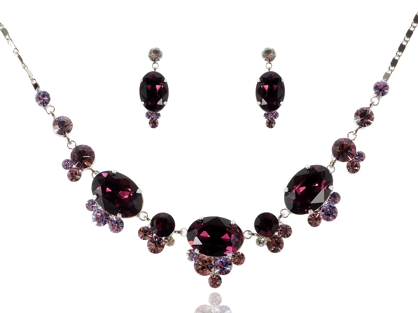 Набор женских серег в виде цветов с фиолетовыми и розовыми кристаллами Стразы