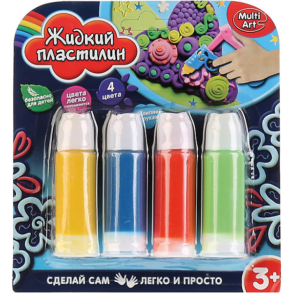 Набор жидкого пластилина MultiArt, 4 цвета, Разноцветный, Набор жидкого пластилина MultiArt, 4 цвета