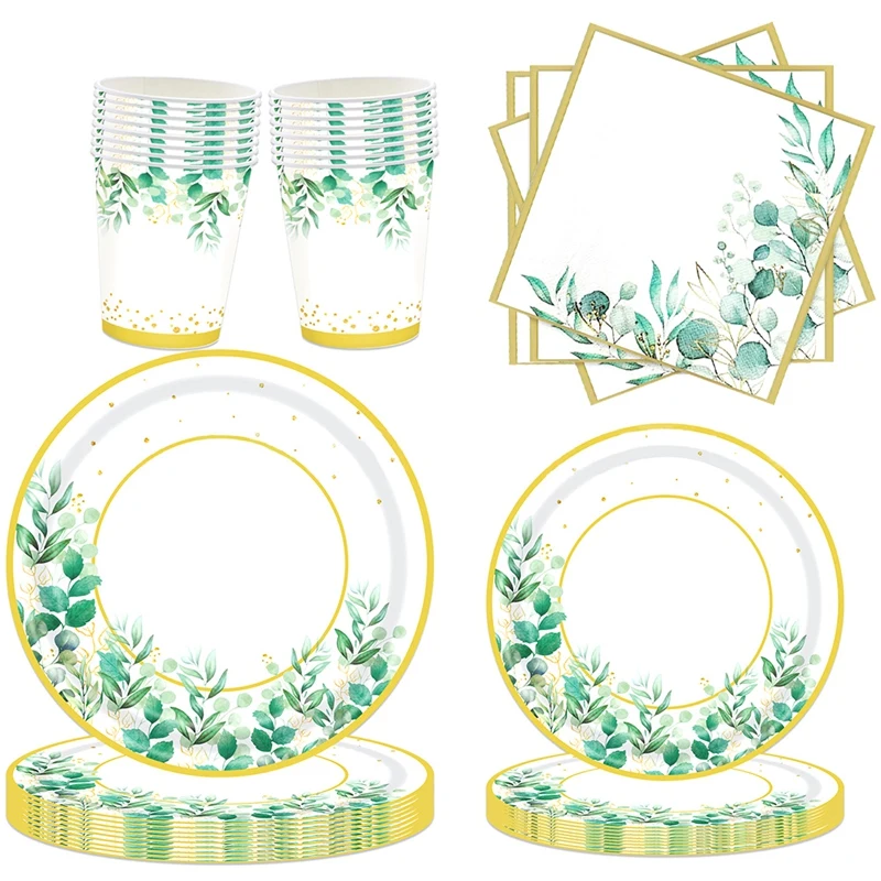 Набор зеленых бумажных тарелок на 24 персоны, как показано, набор украшений для дней рождения, свадьбы