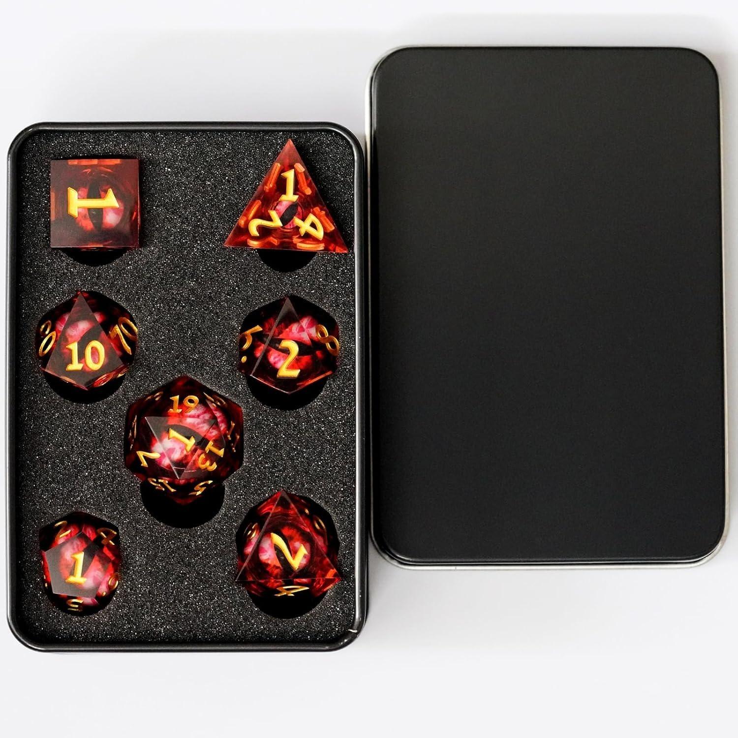 Набор игральных костей «Глаз дракона», 7 игральных костей D&D с острым краем и подарочным футляром для настольной игры «Подземелья и драконы» золотой/красный