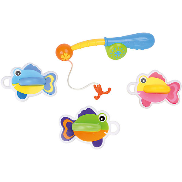 Набор для рыбалки превратит купание малыша в увлекательную игру. При помощи удочки необходимо выловить всех рыбок. Они цепляются безопасным крючком за специальные отверстия.