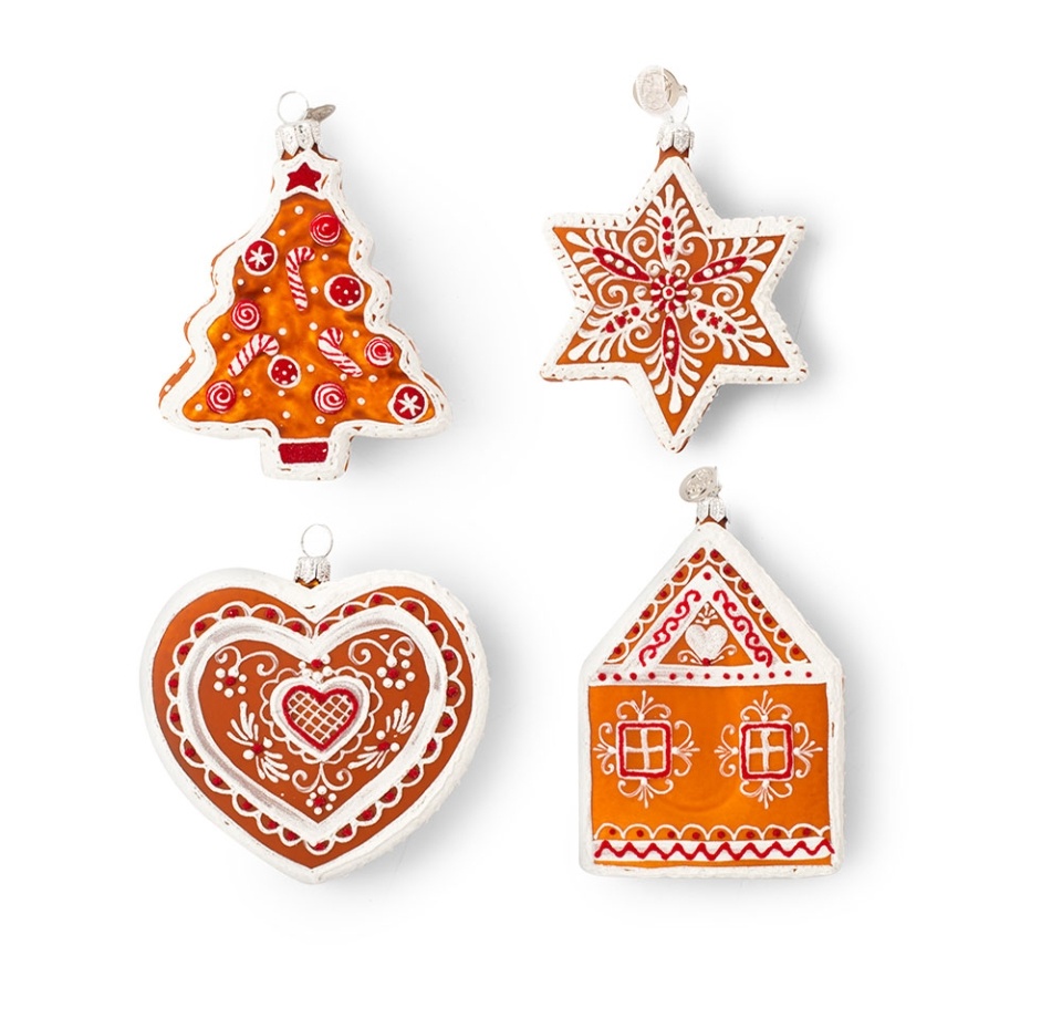 Набор игрушек для елки "Коллекция Традиции" Пряничный декор стекло Азбука вкуса 4шт в упаковке, Венгрия
