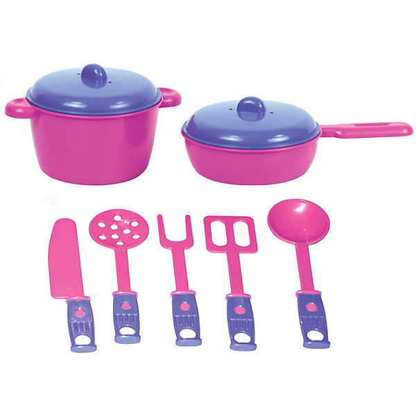 Набор игрушечной посудки «Повар» от бренда Zebratoys (Зебратойс). В наборе всё, что нужно для приготовления вкусных блюд. Сковородка и кастрюлька с крышками, а также кухонные принадлежности для готовки на плите. Все предметы выполнены из безопасного пластика в розово-фиолетовых цветах.