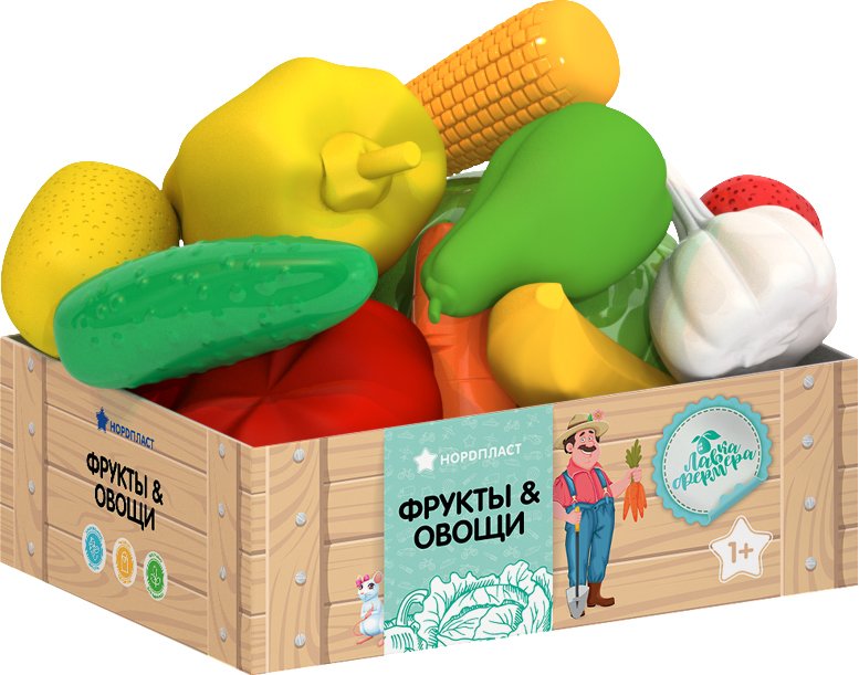 Набор игрушечных продуктов Нордпласт Фрукты и овощи в ящике 437/1
