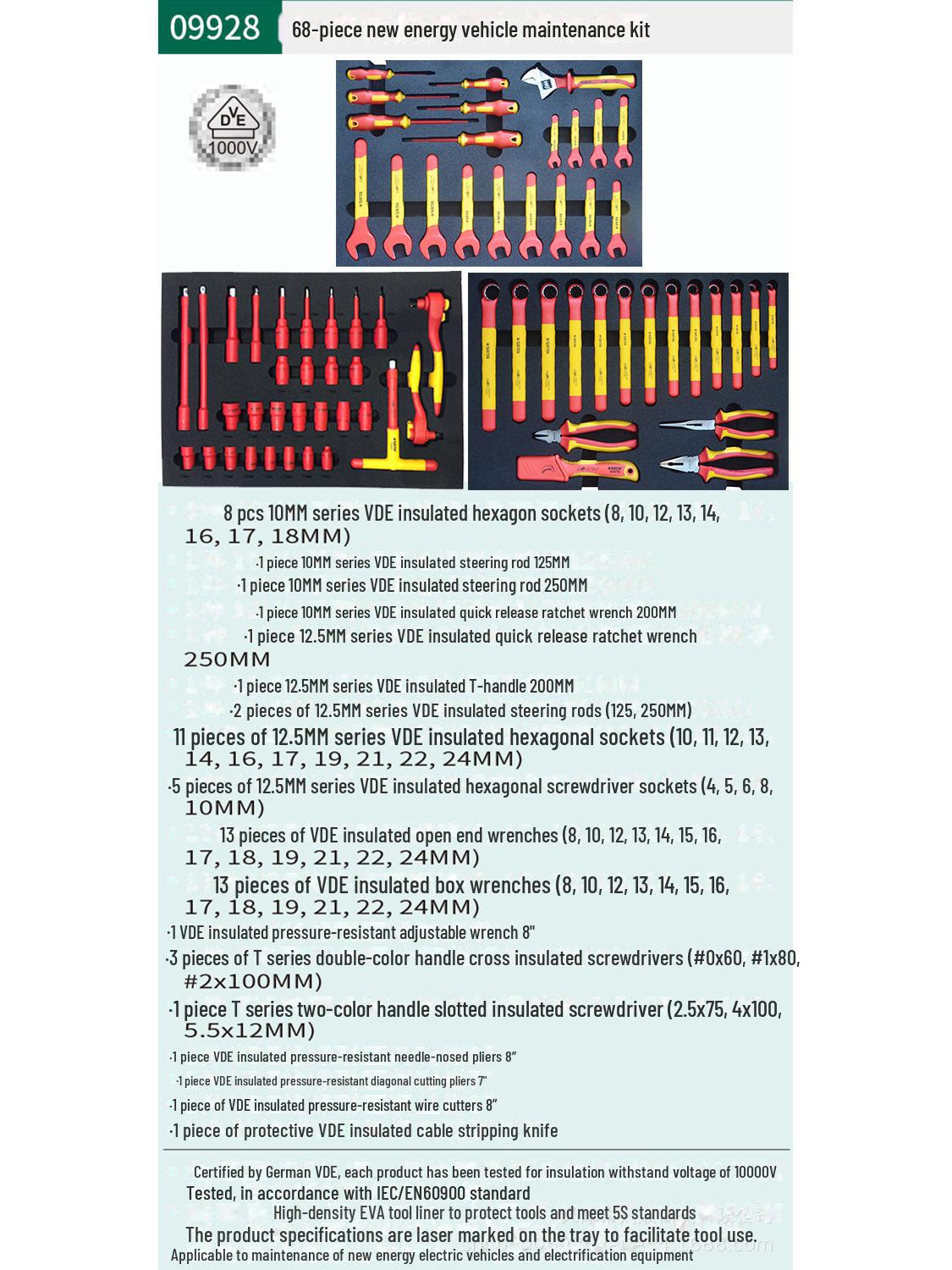 Набор изолированных инструментов Shida, 68 предметов для ремонта электромобилей (Модель 09928) 68 pieces