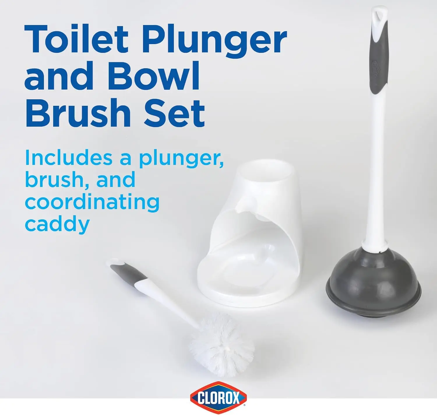 Набор из плунжера для унитаза и щетки для чаши с Caddy, 6,75x7x19,5 дюйма, белый/серый, 2 шт. в упаковке