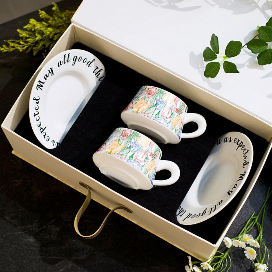 Набор из ретро-чашек и блюдец для кофе, высокая керамическая кружка, сувенир, подарок на новоселье, свадьбу, день рождения, подарочная коробка 260ML