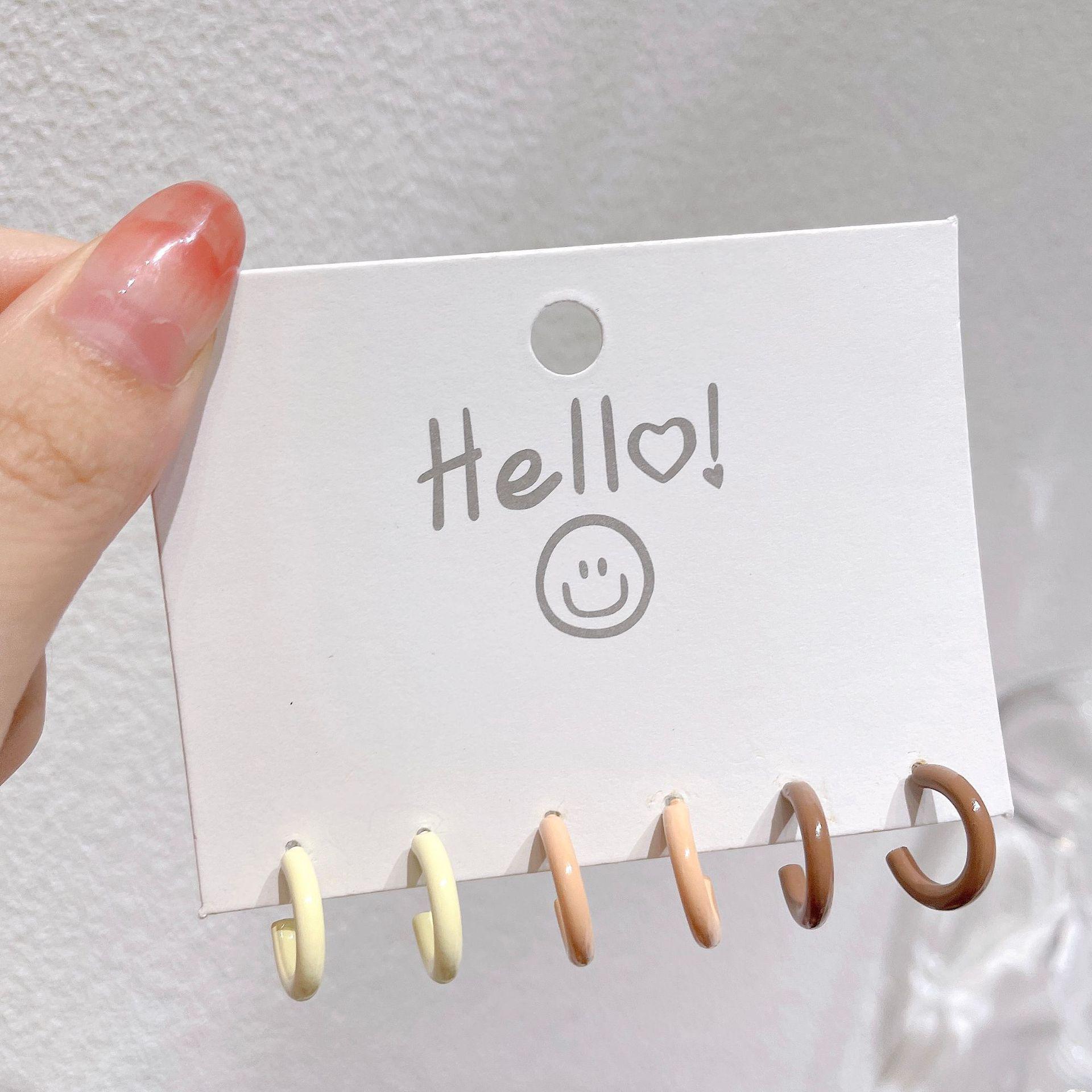 Комплект из сережек в форме буквы С в японском и корейском стиле с карамельным оттенком: Серьги-иглы из серебра 925 пробы, простые и стильные, из трех частей, круглые жёлтый
