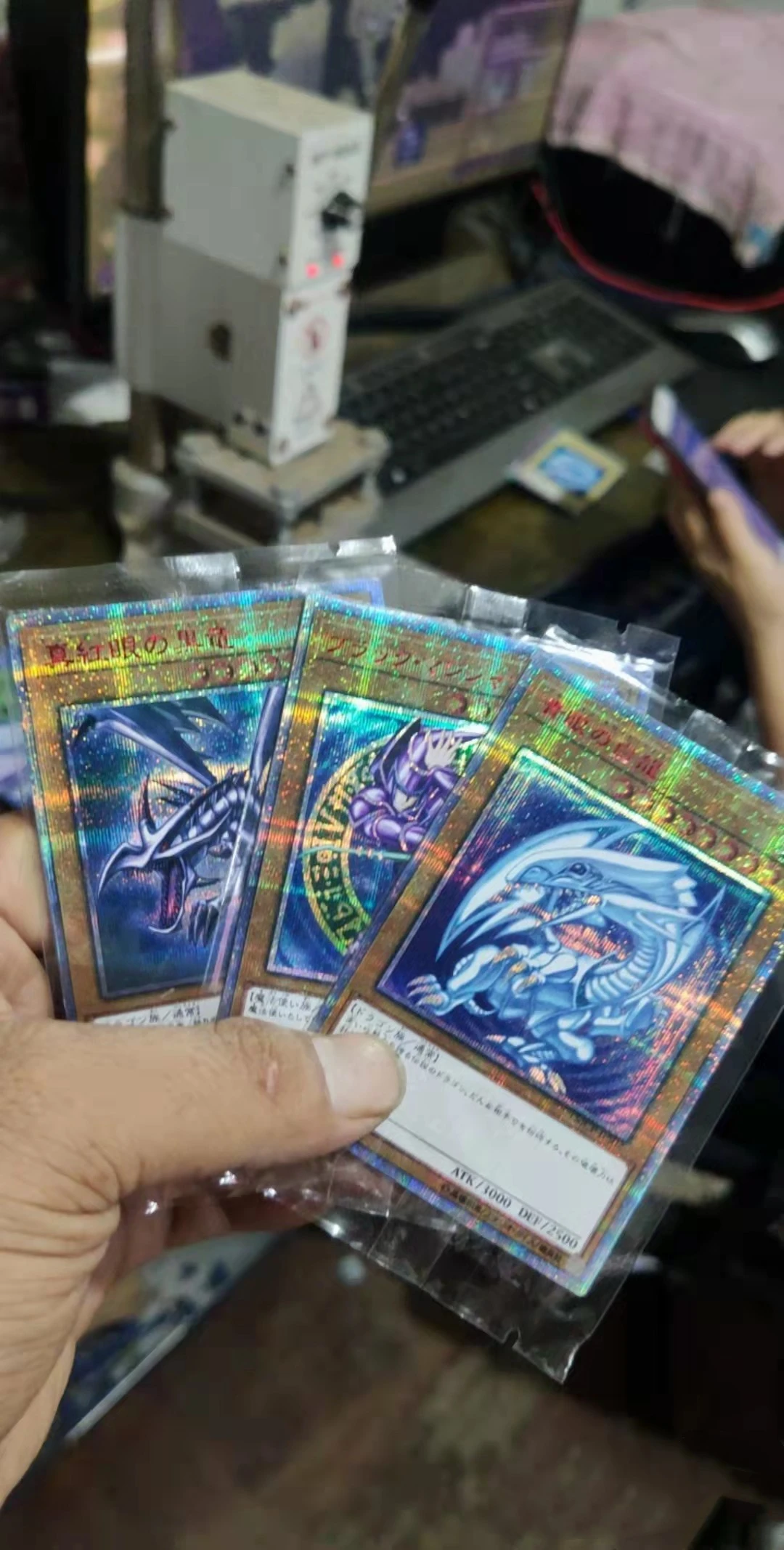 Набор из трех предметов Yu-Gi-Oh WCS2018 SER/UR Blue-Eyes Белый Дракон/Темный Волк/красные глаза B. Карта с изображением дракона (не оригинальная)