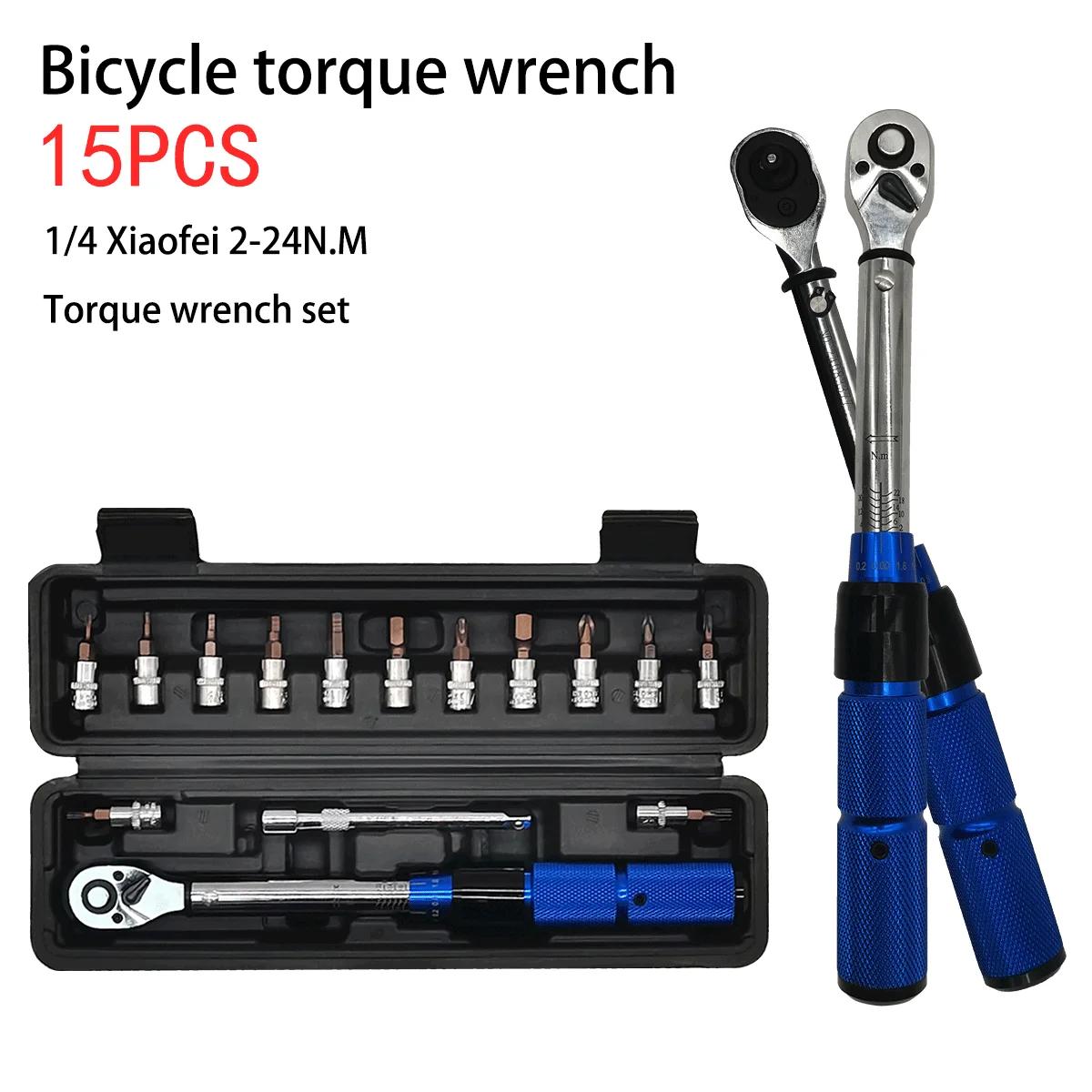 Набор из 15 велосипедных динамометрических ключей 1/4 2-24 Нм, профессиональный набор для ремонта велосипеда, двухсторонний велосипедный шестигранный ключ