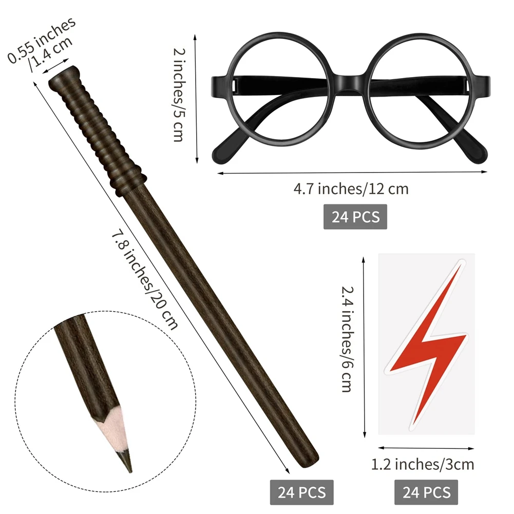 Набор из 24 карандашей «волшебник», 72x очки «волшебник» с круглой оправой, без линз, 24 татуировки